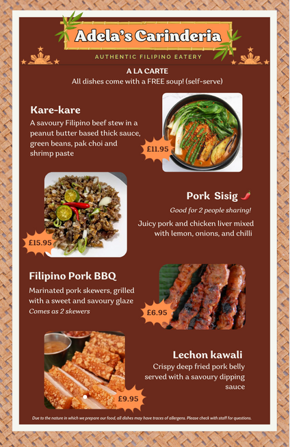 We now have our dishes on our a la carte menu, moving away from the ‘turo-turo’ style so you know exactly what to expect every time you come! From pork BBQ skewers, to dinuguan, there’s a range of classic filipino dishes now available all the time!