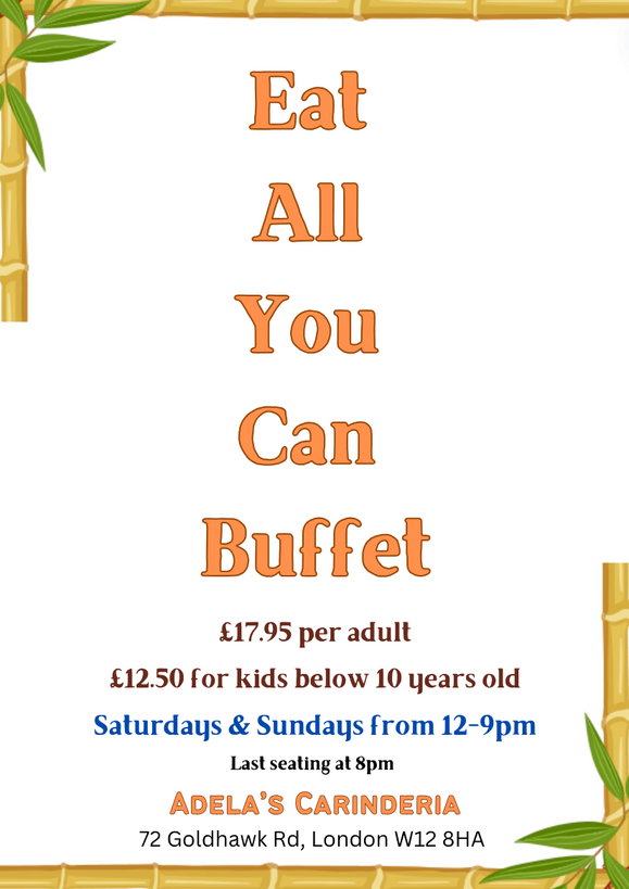 Every weekend at Adela’s Carinderia, we offer an Eat-All-You-Can Buffet with dishes ranging from kare-kare, sisig, tocino, lumpia, bulalo soup and more!